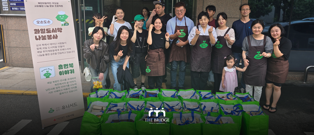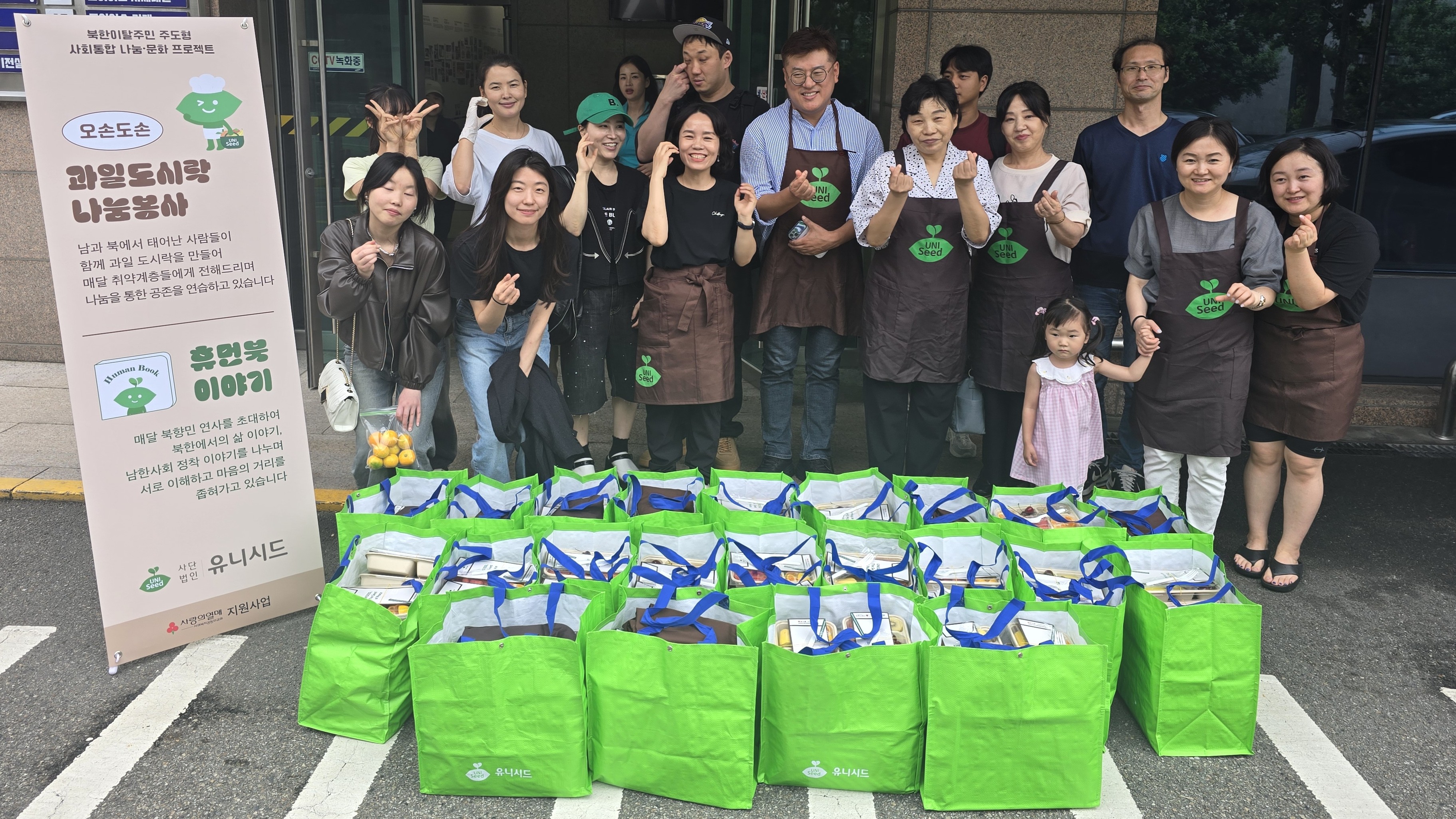 The core of Uniseed’s work lies in “sharing and dialogue.” These two values not only represent the most peaceful path toward reunification but also serve as meaningful steps in preparing for true human connection between North and South Koreans after unification. Uniseed runs the “Warmhearted Lunchbox Sharing” program, where residents from both North and South Korea come together to deliver fruit lunchboxes to elderly neighbors in the Seoul Station shantytown who suffer from vitamin deficiencies. Once a month, we prepare 200 to 300 fruit lunchboxes. This initiative has now continued for 11 years, involving over 1,000 volunteers and distributing more than 20,000 lunchboxes in total.